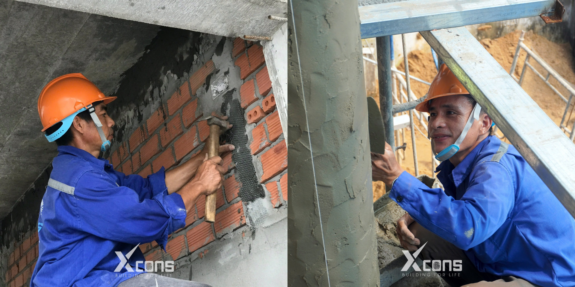 Việc thống nhất nhu cầu ngay từ đầu sẽ giúp Kiến trúc sư đưa ra giải pháp tối ưu công năng, đảm bảo ánh sáng và luồng gió. Quan trọng hơn, khi nhu cầu đã rõ, việc thi công sẽ đi vào khuôn khổ. Như hình ảnh đội ngũ Xcons đang thi công tỉ mỉ bên dưới: chỉ khi "đề bài" của chủ nhà rõ ràng, người thợ mới có thể hiện thực hóa chính xác từng góc cạnh, tránh tình trạng xây nhà phát sinh chi phí do đập đi sửa lại vì "không ưng ý".